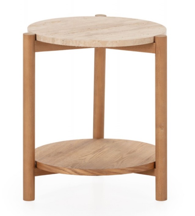 - Kulatý příruční stolek Labastida z přírodního dřeva a kamene