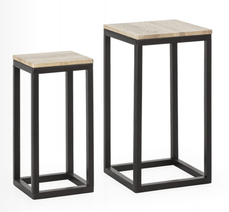 - Set dvou stolků Ondarroa s kamennými deskami a černým kovovým rámem