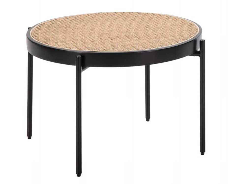 - Kulatý příruční stolek Tolosa s kovovou konstrukcí a detaily z pleteného ratanu