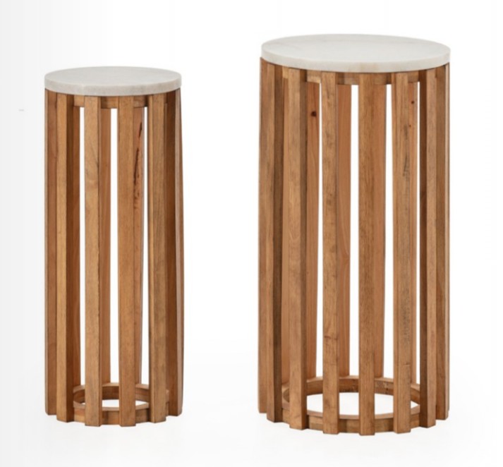 - Set dvou stolků Haro kombinuje přírodní dřevo a moderní kámen pro jedinečný vzhled