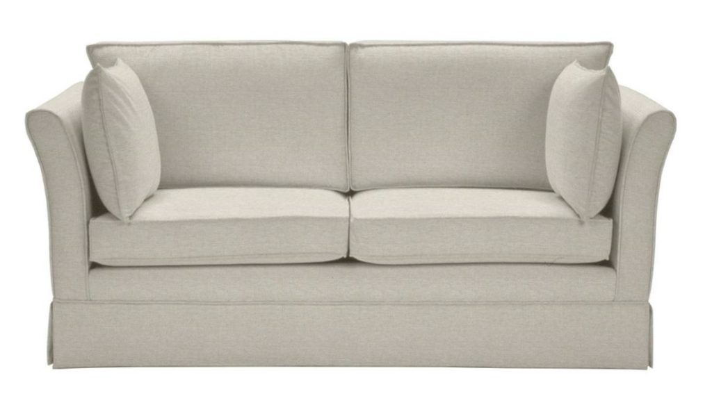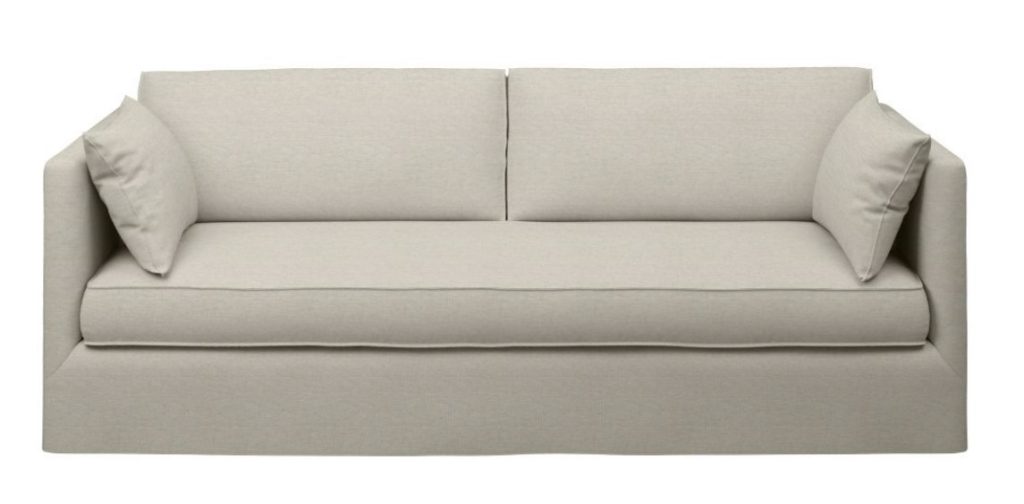Elegantní sofa s jednodílným sedákem, pro příležitostné šlofíky. V neutrální béžové látce, lněného vzhledu s nešpinivou úpravou.